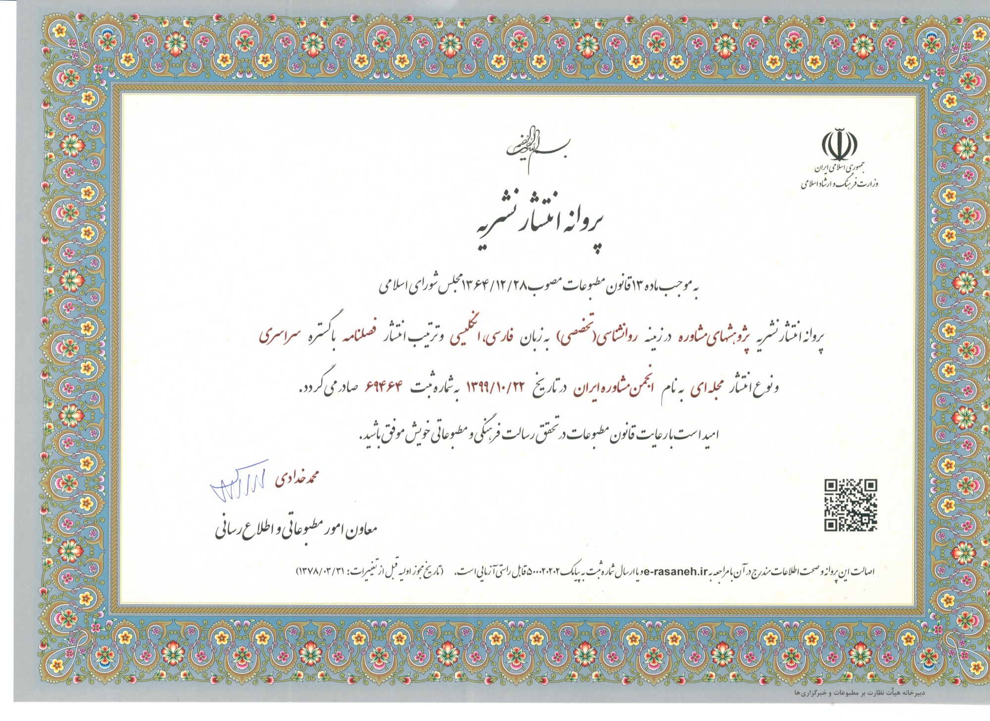 هدف این مجله عمدتا آن است که در جهت به روز در آوردن اطلاعات تخصصی جامعه ی مشاوران و روان درمانگران کشور و منعکس کردن نظرات آنان و نتایج تحقیقاتی که در زمینه مشاوره و خدمات درمانی به عمل می آید ،تلاش کند . |